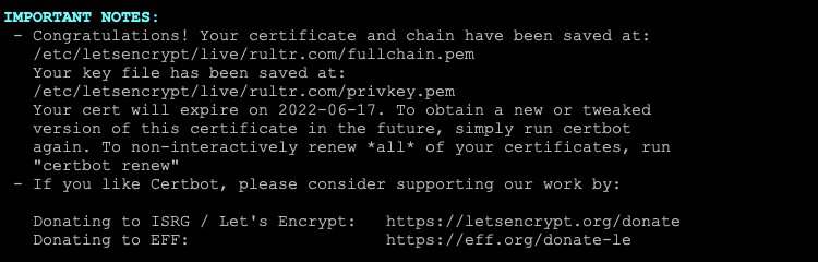 ssl_certificate /etc/letsencrypt/live/www.rultr.com/fullchain.pem; ssl_certificate_key /etc/letsencrypt/live/www.rultr.com/privkey.pem;