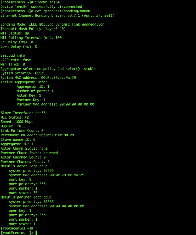 # ifdown ens34 # cat /proc/net/bonding/bond0