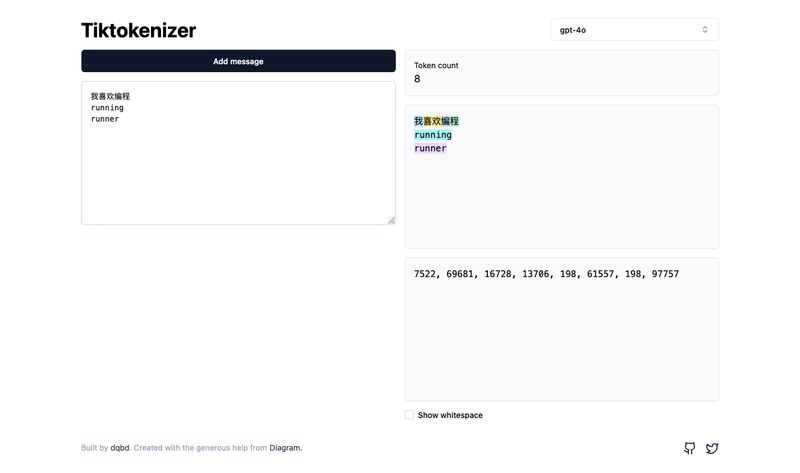 PS:使用 Tiktokenizer 这个方便的工具,就可以可视化和理解不同模型如何对文本进行标记。
