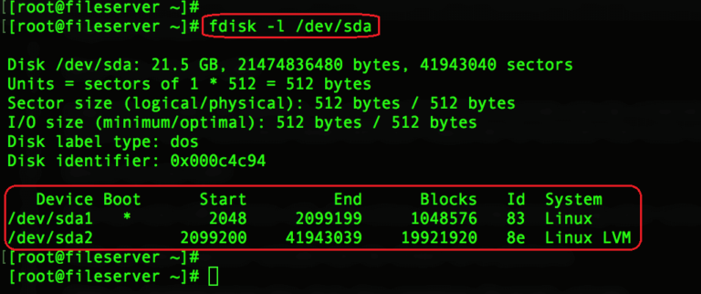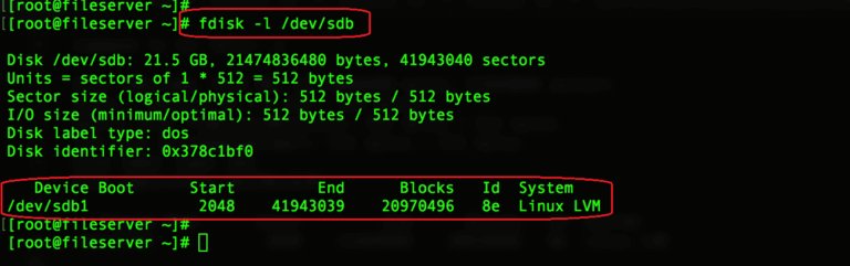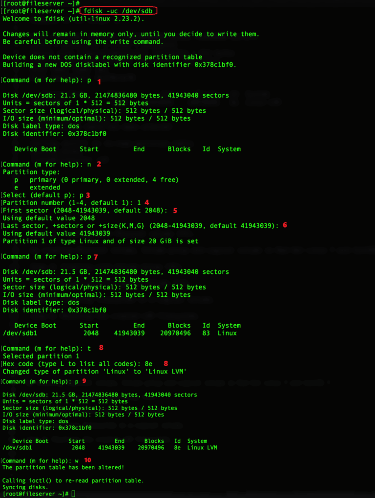 首先,我们需要对磁盘进行分区以创建物理卷。让我们看看如何使用fdisk