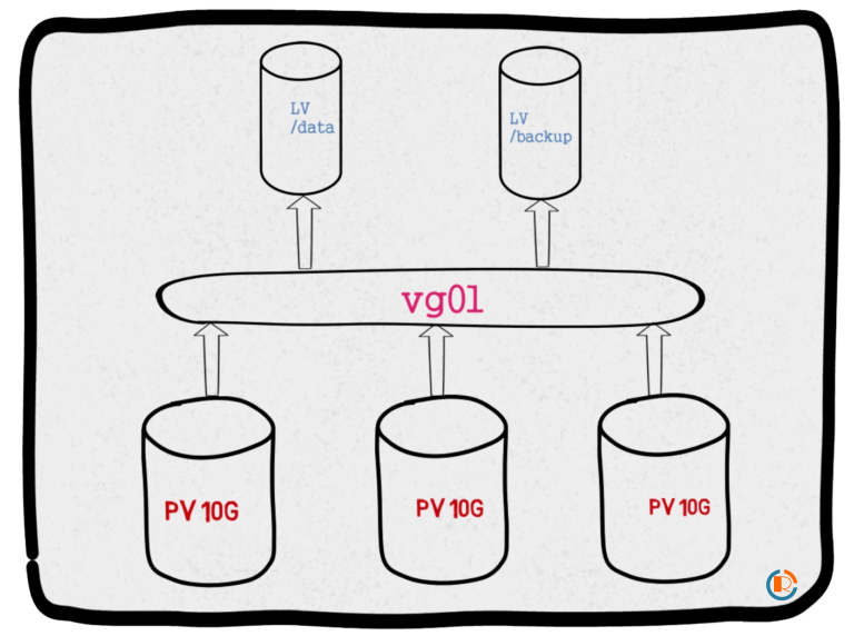 卷组顾名思义当然是由PV组成的组,可以理解成由一个或多个PV组的共享存储池。举例来说,假如我们有10个容量为1TB的PV,而将这10个PV组成一个卷组,那么就会得到一个容量为10TB的卷组。