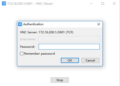 现在就需要输入VNC帐户密码了,就是之前使用”vncpasswd”命令设置的密码,输入完成后点击”OK”: