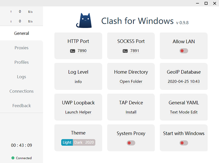 配置文件下载成功后,Clash 就可以根据配置文件的内容进行工作了,也不需要再做其它的修改就可以直接代理上网。