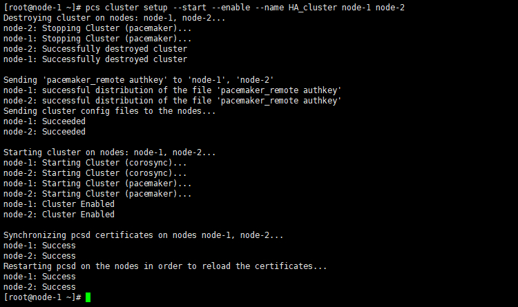 #  pcs cluster setup --start --enable --name HA_cluster node-1 node-2