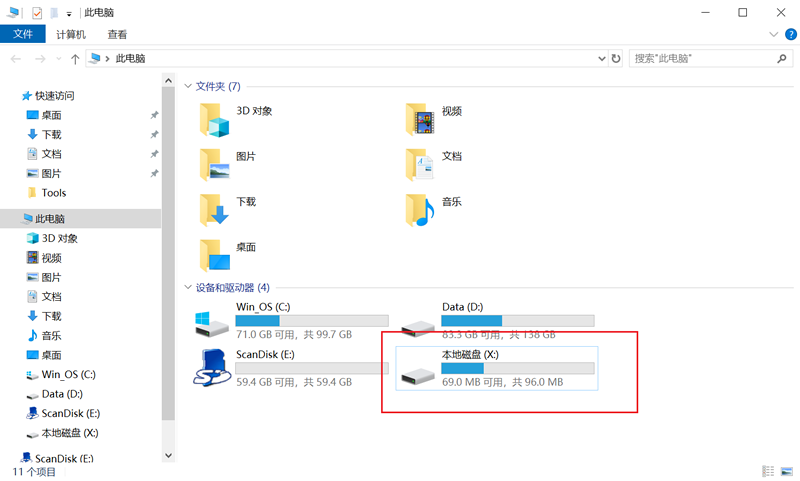 分配成功后, 我们就可以在 Windows 的文件资源管理器中看到该分区了: