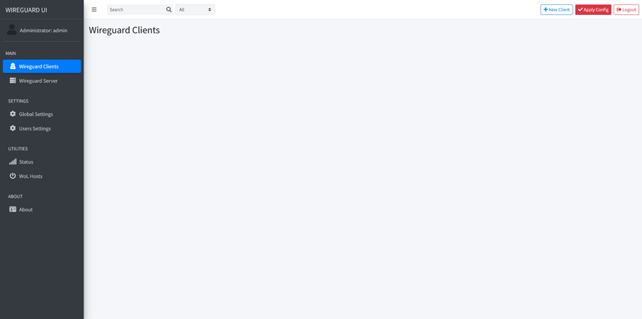 通过浏览器访问”http://YOUR_SERVER_IP:5000″,就可以进入 wireguard-ui 的登录界面,使用默认的用户名”admin”和登录密码”admin”,就可以进入到 wireguard-ui 的管理页面:
