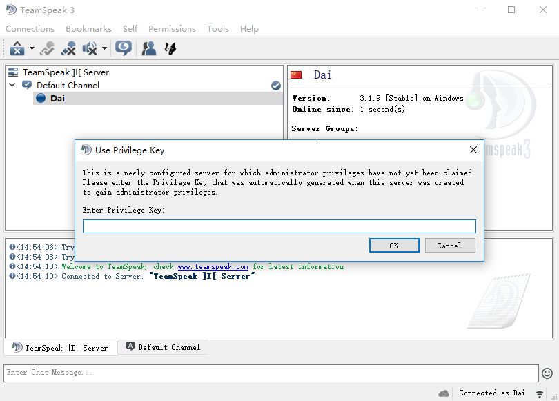 图.4 TeamSpeak客户端输入token码