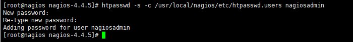 # htpasswd -s -c /usr/local/nagios/etc/htpasswd.users nagiosadmin